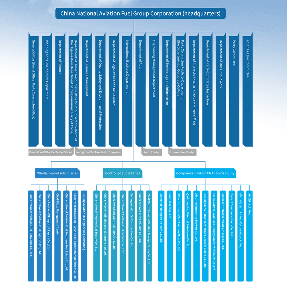 China National Aviation Fuel Group Limited is the largest state-owned aviation fuel supplier which integrates the purchase, transportation, storage, quality management, sales and into-plane service of aviation fuel in China. It is an investment organization authorized by the State Council, a pilot state-owned holding company, and a central SOE directly under the administration of the SASAC.
